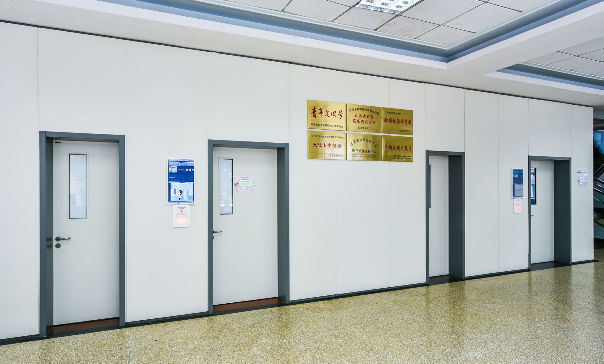 合肥传辉企业形象推广有限公司为江苏省肿瘤医院项目改造中提供医疗环境整体解决方案,其中包含金属门、金属隔断、金属墙板、金属吊顶等。打造高品质人性化的医疗空间。