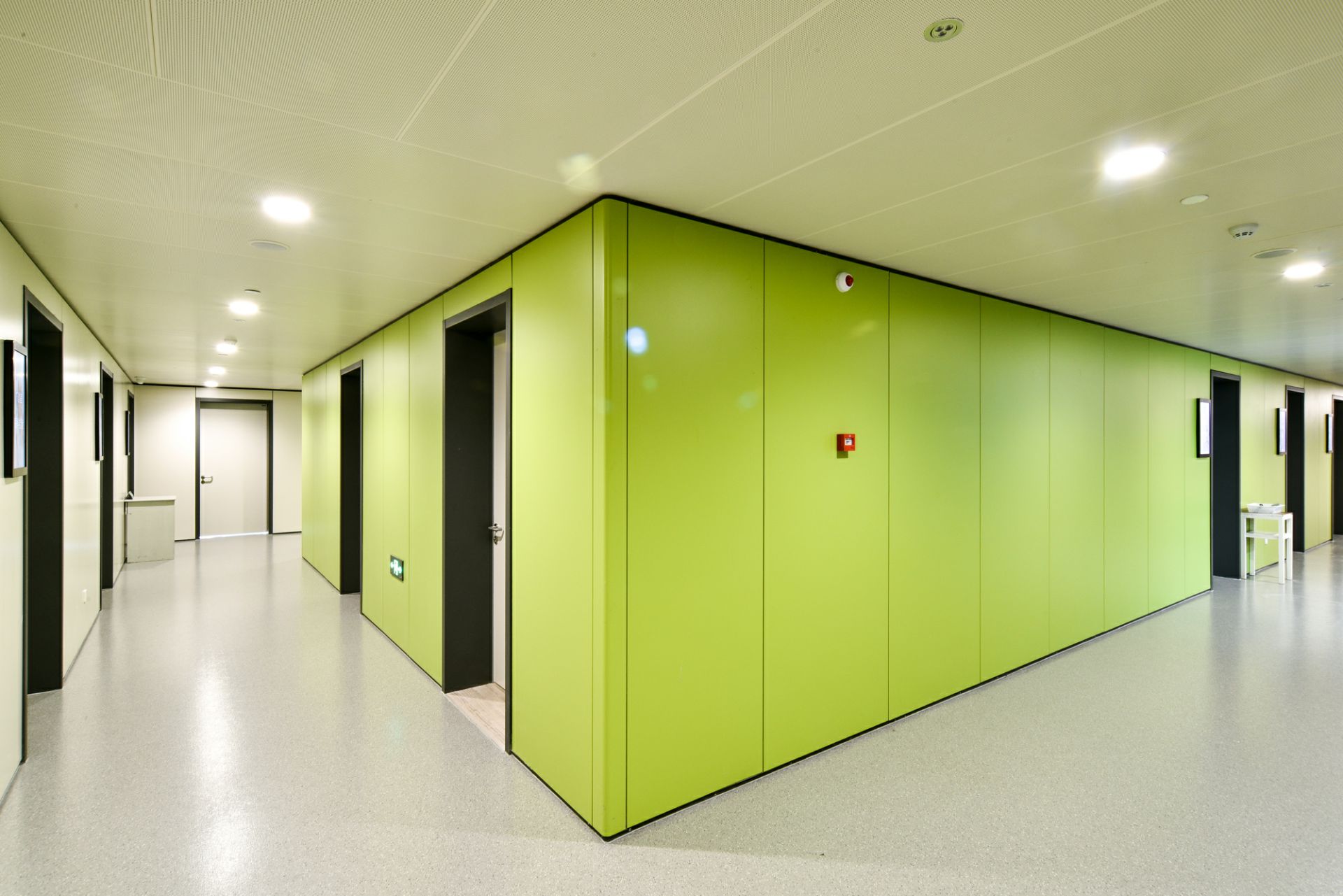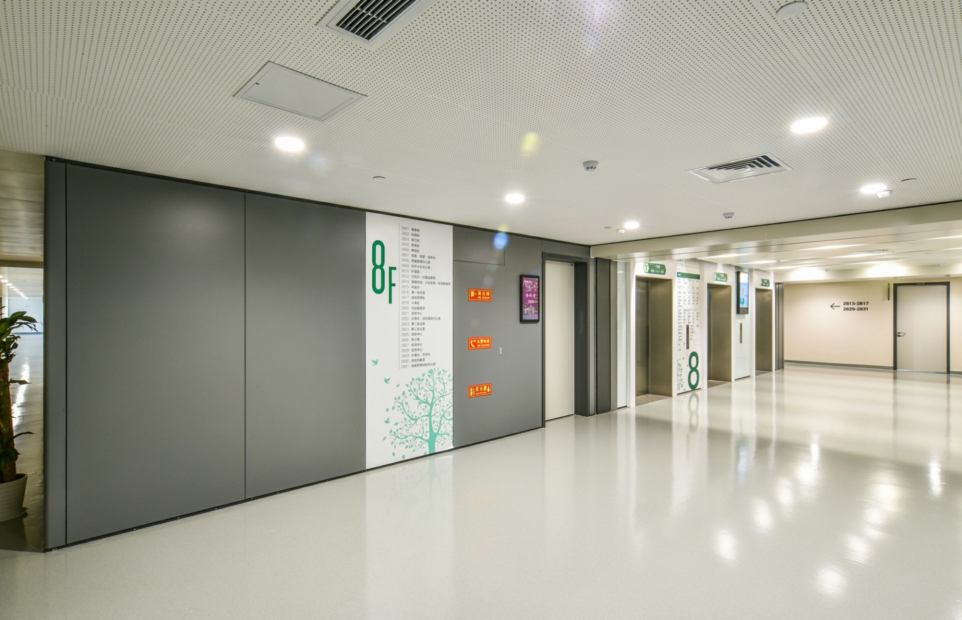 合肥传辉企业形象推广有限公司为南京第一医院新建大楼项目中提供医疗环境整体解决方案,其中包含金属门、金属隔断、金属墙板、金属吊顶等。打造高品质人性化的医疗空间。