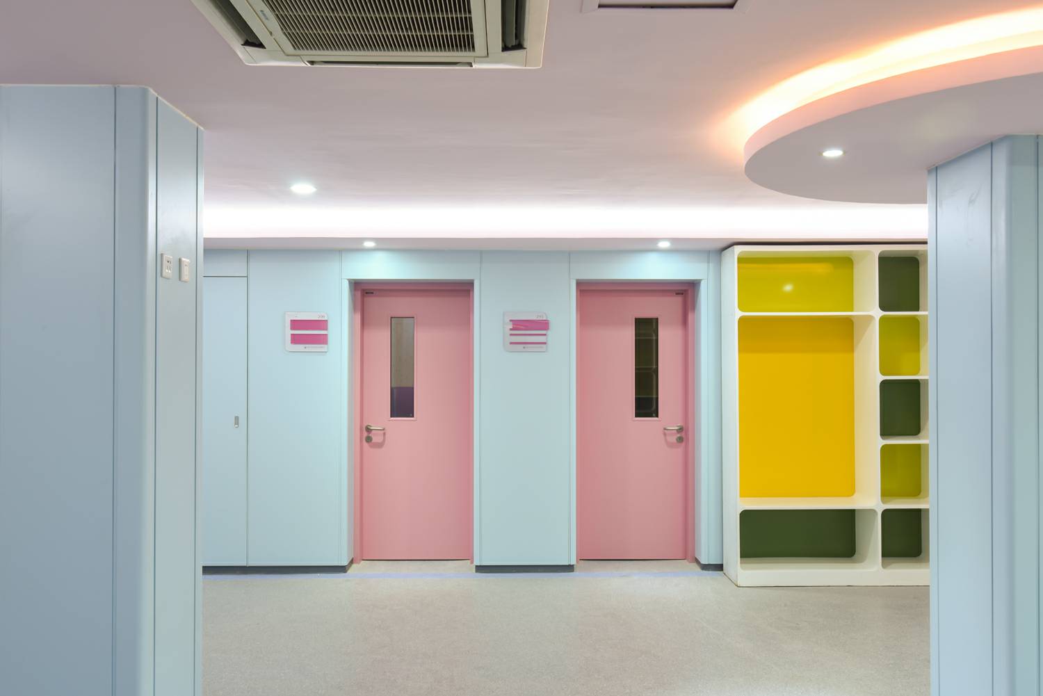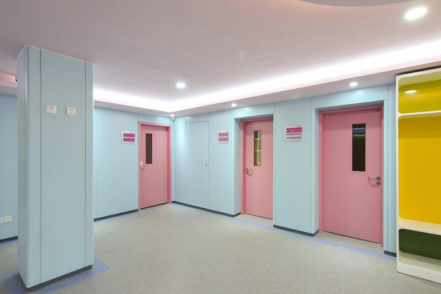 合肥传辉企业形象推广有限公司将“情感化”的色彩应用在钢质门及墙板,置身于医疗环境中,"将人的情感与知觉放在第一位",使患者享受医院环境带来的真诚的人性化关怀,打造具有人性化色彩环境的医院空间。